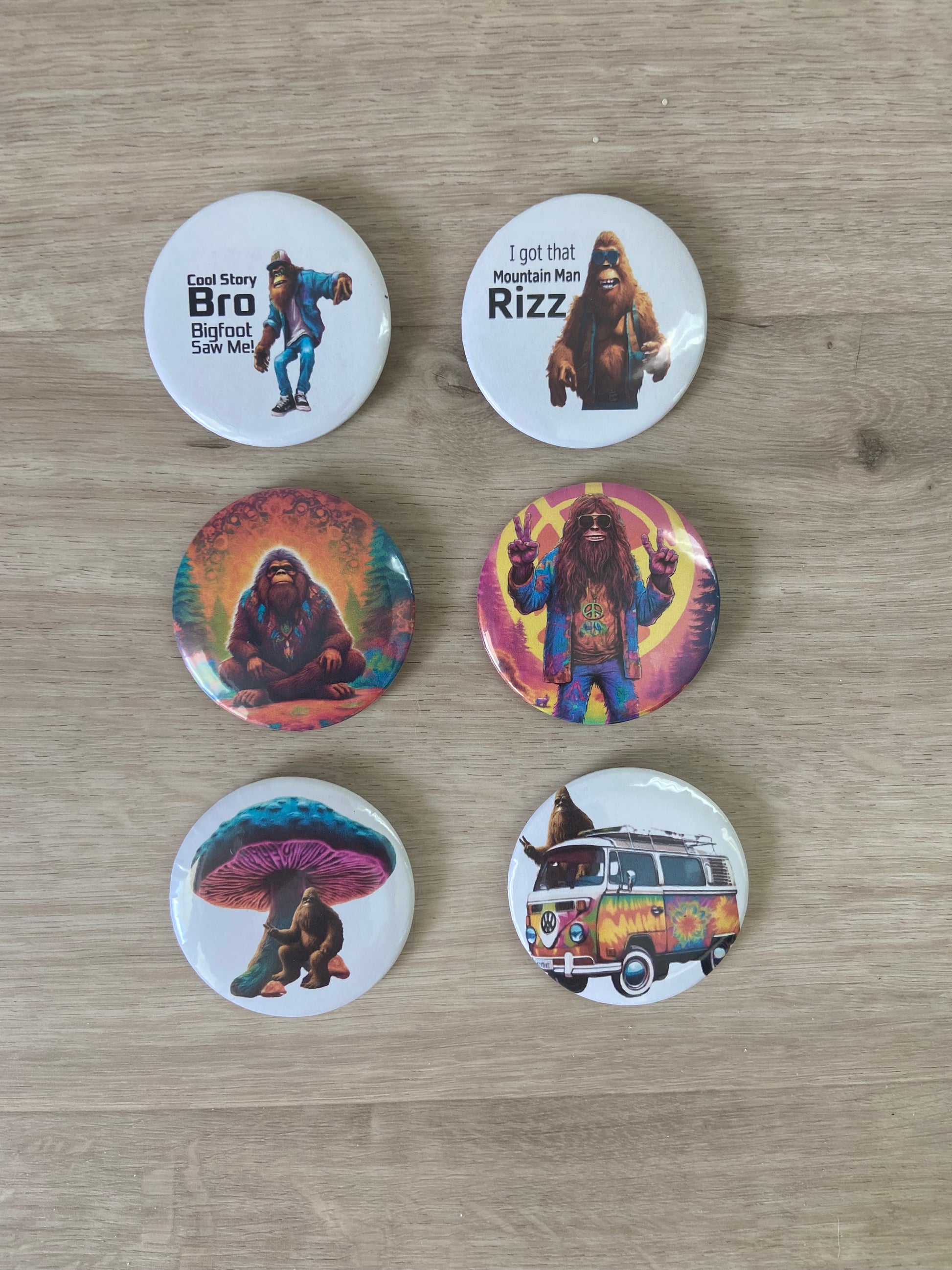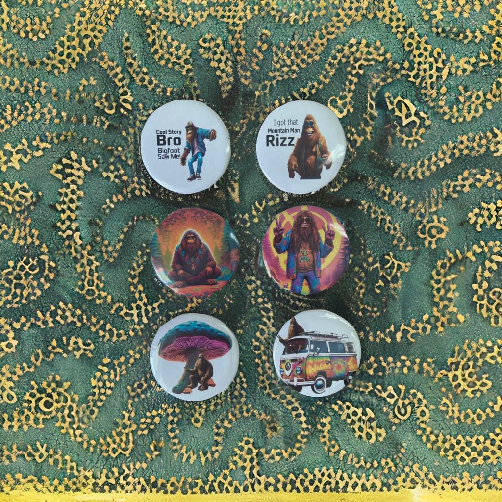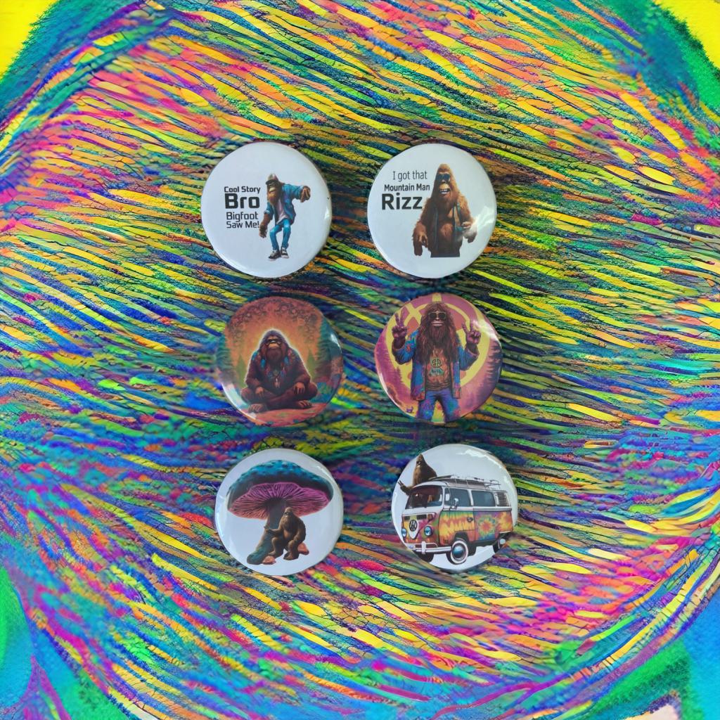 6-Pack of Trendy, Hippy, Gen Z Bigfoot Button Pins