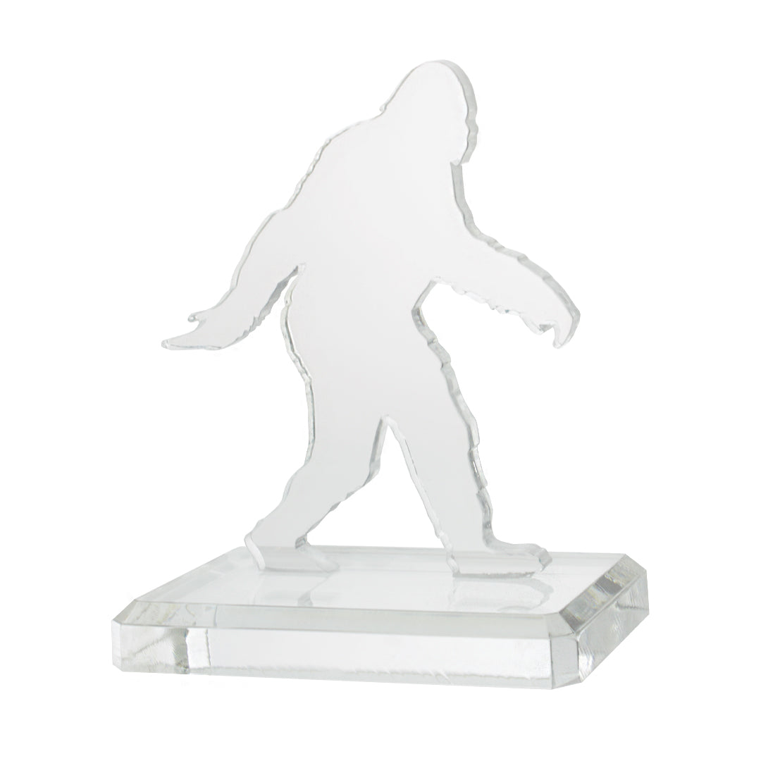 Fabricated in our Sasquatch Approved Facility comes this handmade Sasquatch Bigfoot award! It is made using 3/8" thick clear acrylic and stands 6" tall on an acrylic base shaped with beveled edges and a sleek design. Purchase as a gift, for an award ceremony, or even to put in a special place at home. We offer customization options where you can add a name or date on the base. If this is something you are interested in please contact us at sales@sasquatchthelegend.com and we can get a mock produced for you. The award has a beautiful flame polish finish making it easy to admire from afar. We offer two sizes, the standard 6" tall and also a larger one that sits at 15" tall. The larger one can be considered the lifetime achievement award. It is as grand as it gets!