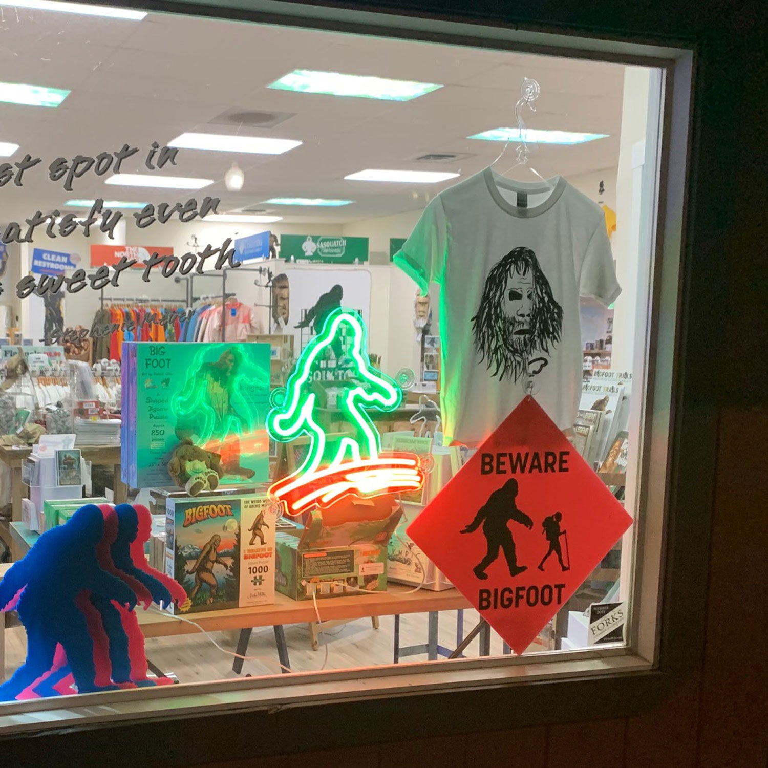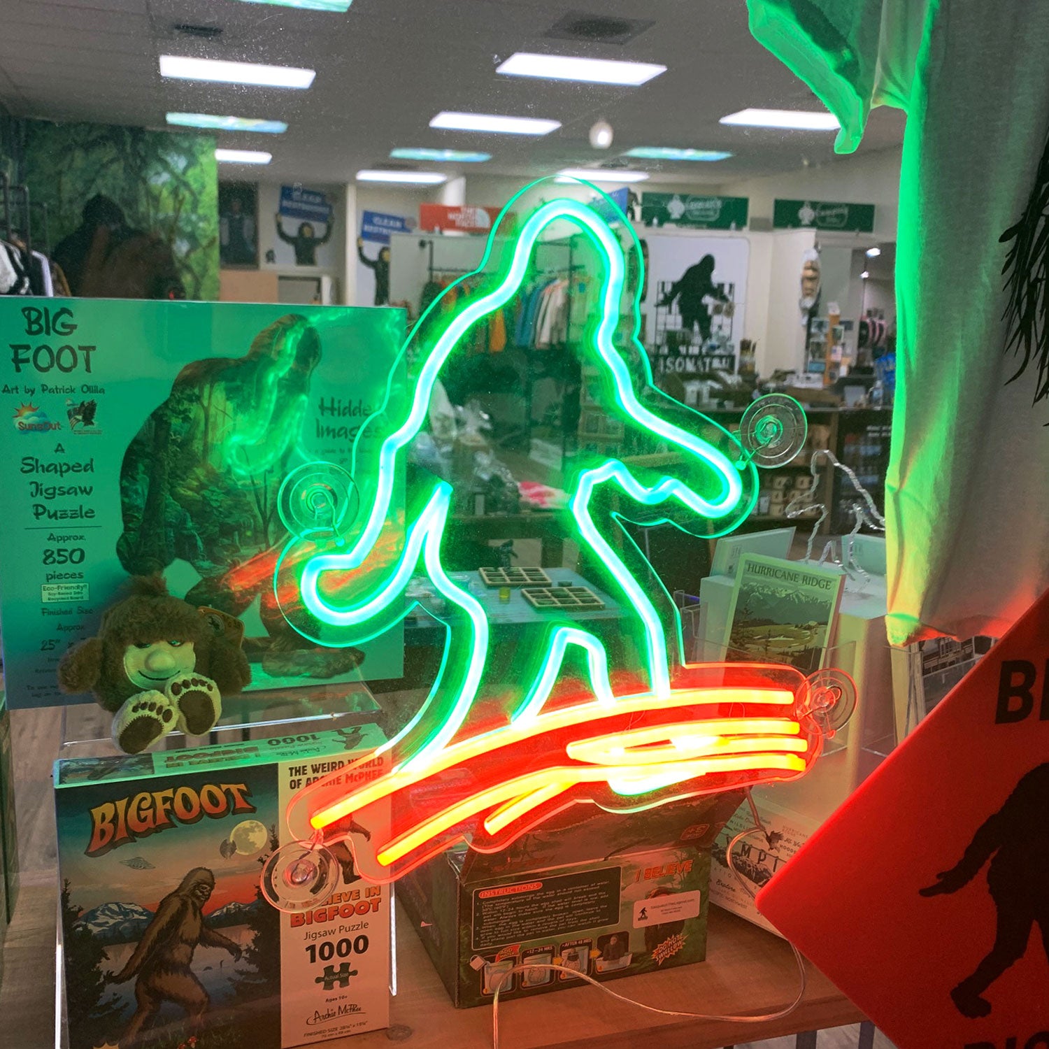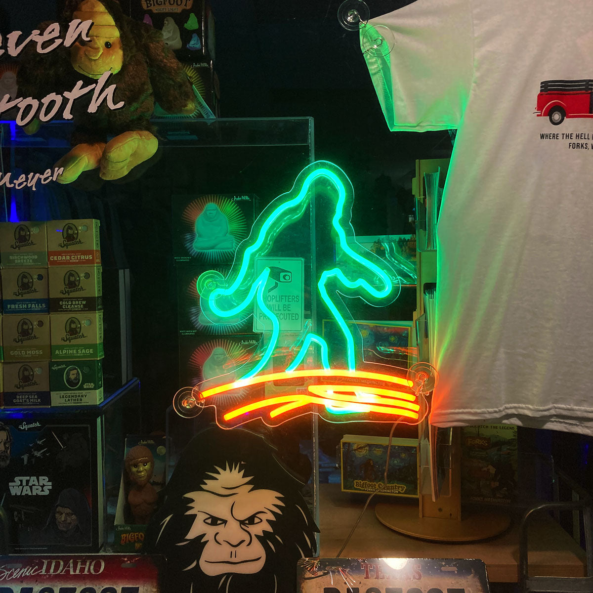 An awesome neon sign to showcase Sasquatch to friends and family. This faux neon sign is a great addition to any room or store. The flex LED neon sign is a safe, low heat, non-frangible choice for adding a neon light to your wall and window. Sign measures 15 inch x 15 inch.