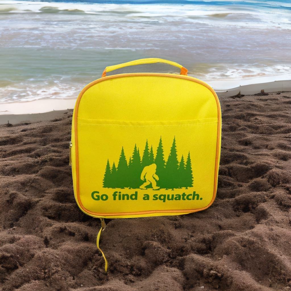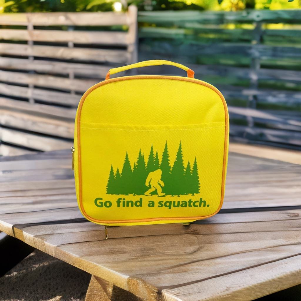 You can carry along the Go Find a Squatch Insulated Lunch Bag on your next outdoor outing. It's the perfect bag to carry a sandwich, drink, and snacks.