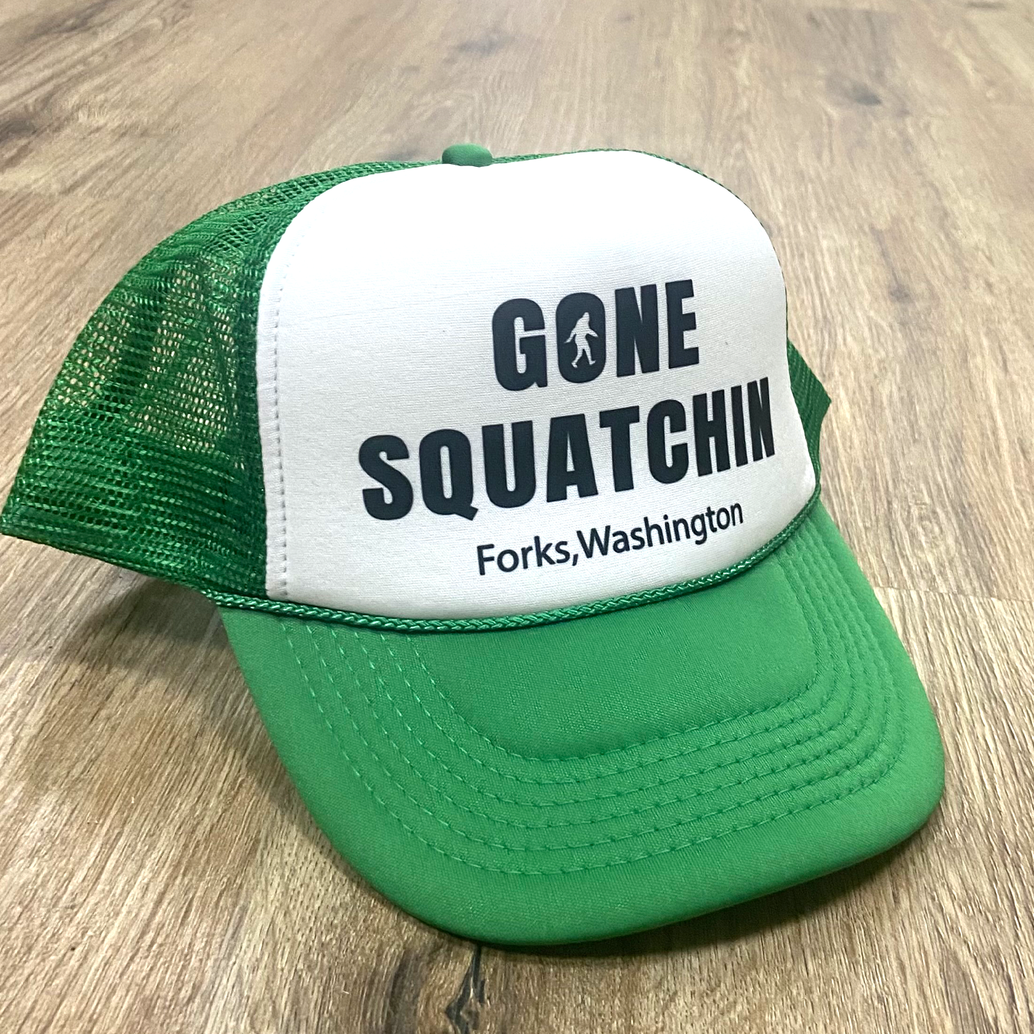 This Gone Squatchin trucker hat is similar to the popular hat worn in the show Finding Big Foot.