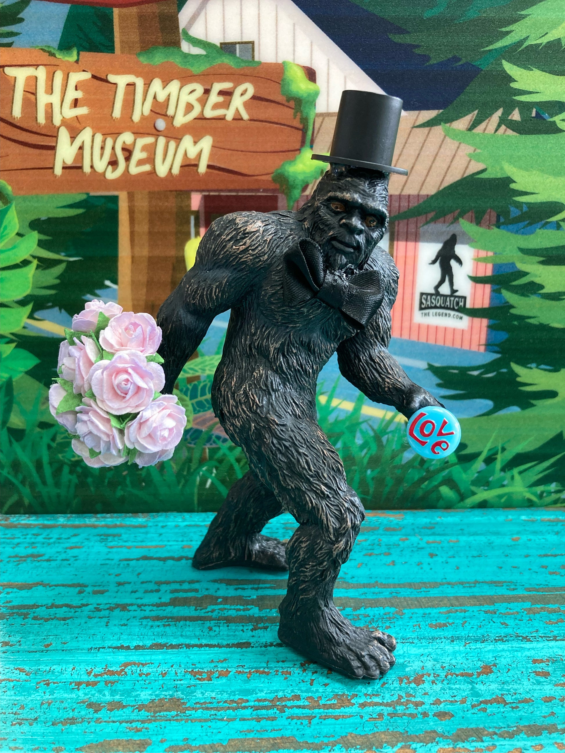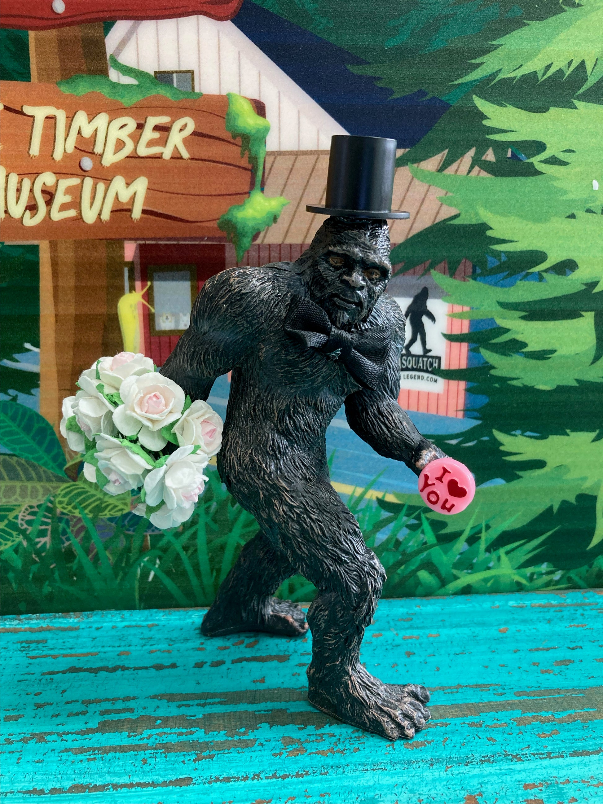 He/She is 5" tall and will arrive at your doorstep holding flowers & a wine glass or flowers & a candy heart. You can place the Love 'Squatch on the center table or have Sasquatch stand on the top of a cake. We're sure Love Sasquatch will make any special moment filled with laughter and memories.