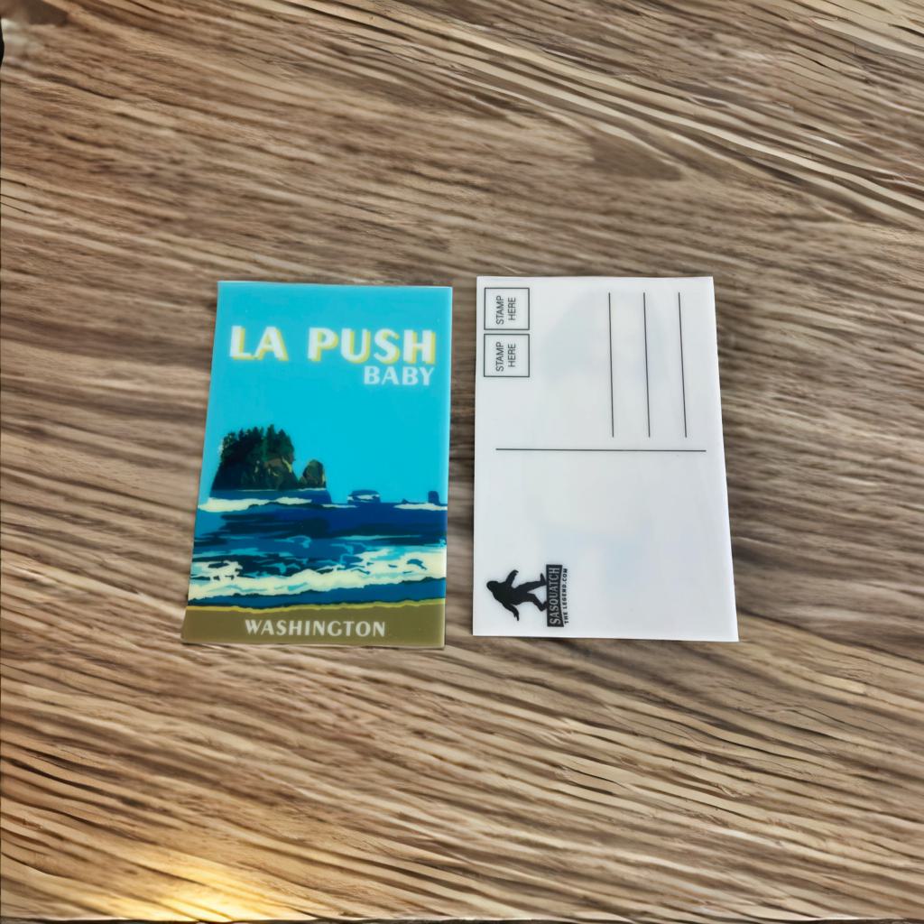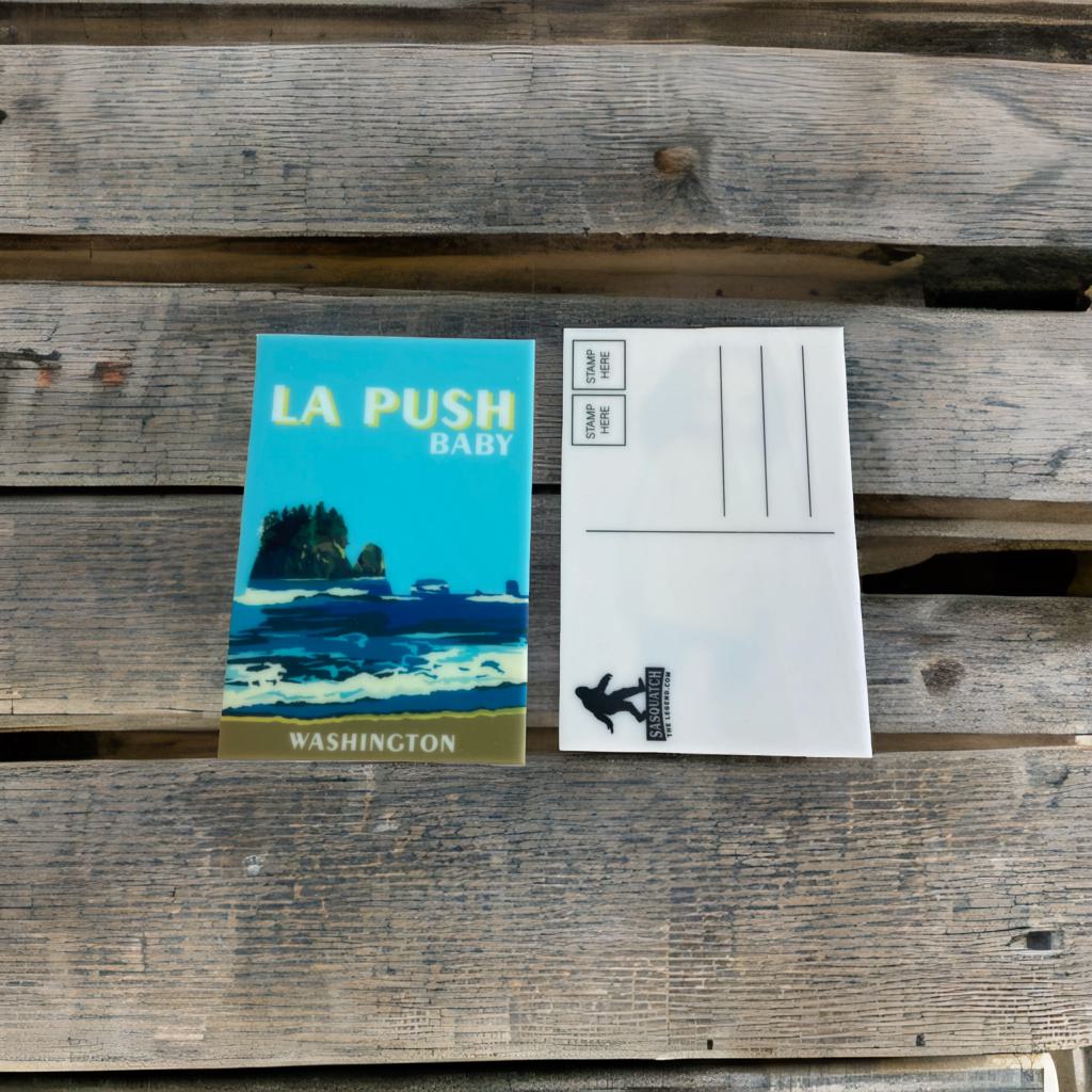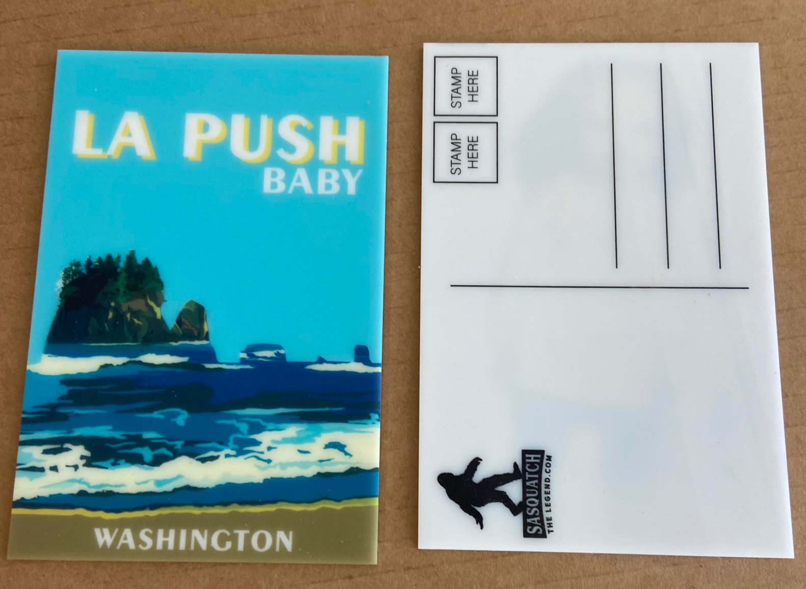 Our Acrylic Post Cards are a standard post card size 6 inches wide x 4 inches tall. We print them in-house with a commercial UV printer.