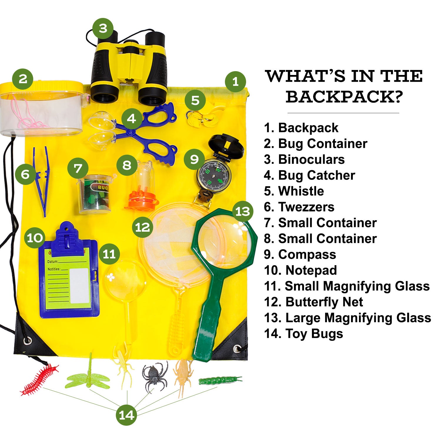 Going on a outdoor adventure? Have your kid carry along this Sasquatch Approved Bigfoot Explorer backpack on your next outdoor outing. The Bigfoot Explorer kit has everything a kid will need to have fun and learn about Bigfoot and small insects. The kit includes binoculars for Bigfoot scouting, nets, magnifying glass, specimen containers, compass, whistle, notepad and much more.