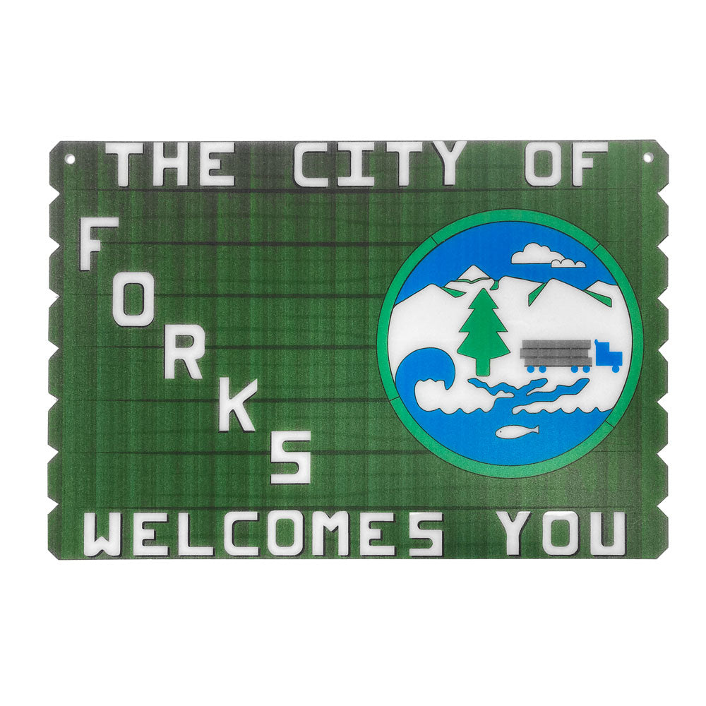 If you've driven to Forks Washington then you've have come across this sign before you got into town. Many Twilight fans have come afar and stop to pose in front of it. We are now offering it to you as a ornament for you to hang onto your Christmas tree or your vehicle rearview mirror. Give it away as a gift, so friends and family will be reminded of the small and charming town of Forks.