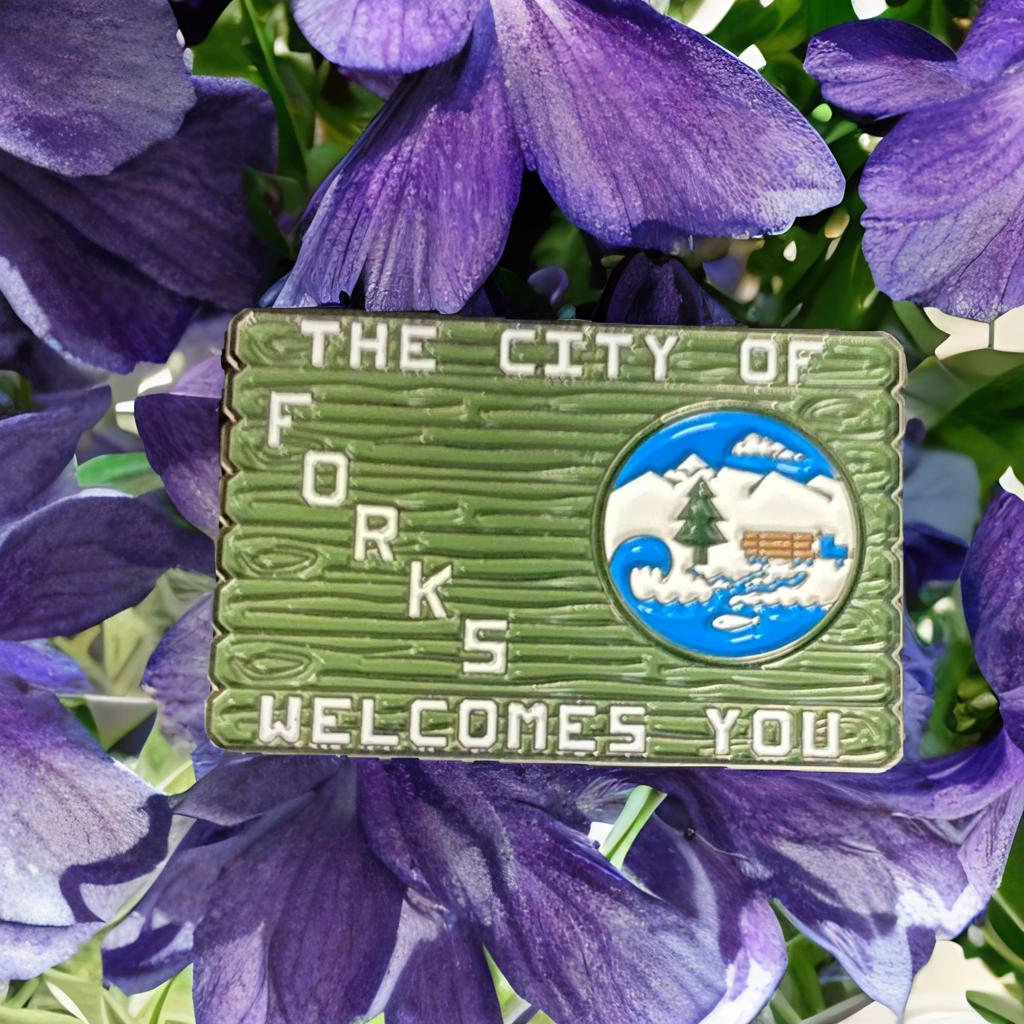 The City of Forks Welcomes You Sign Metal Enamel Lapel Pin
