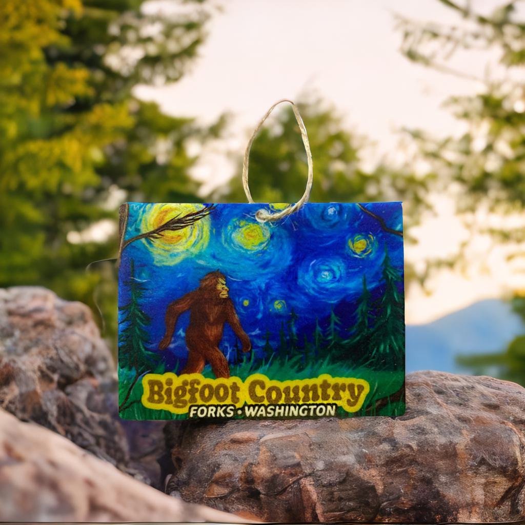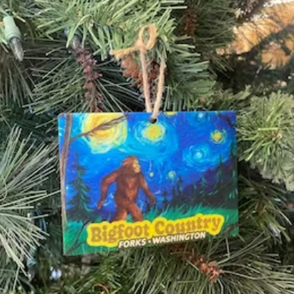 Do you like Van Gogh's Starry Night painting? If you do, then you will love our version of a Sasquatch Starry Night Bigfoot Country Ornament.