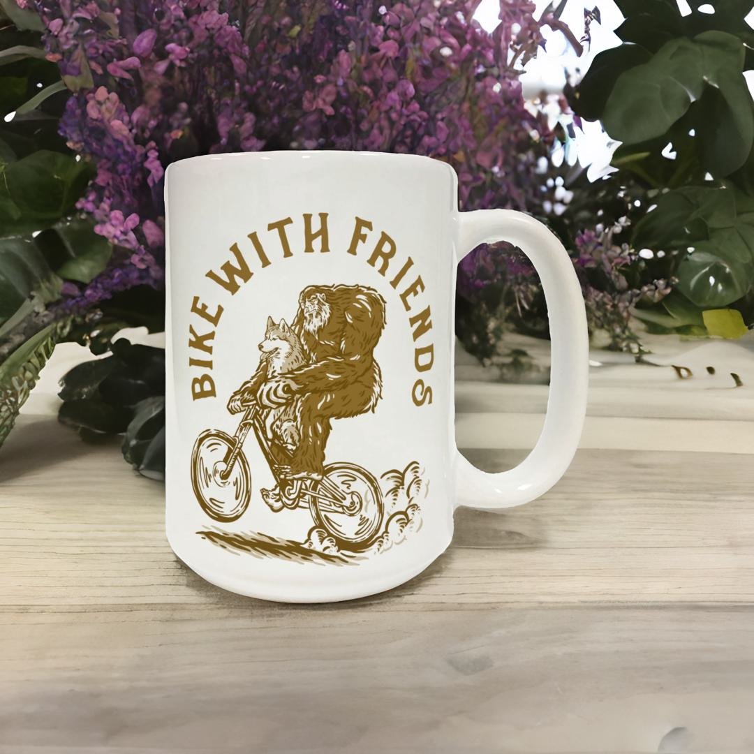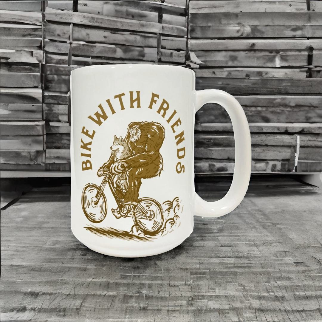 Bike with Friends Coffee Mug 15 oz Ceramic