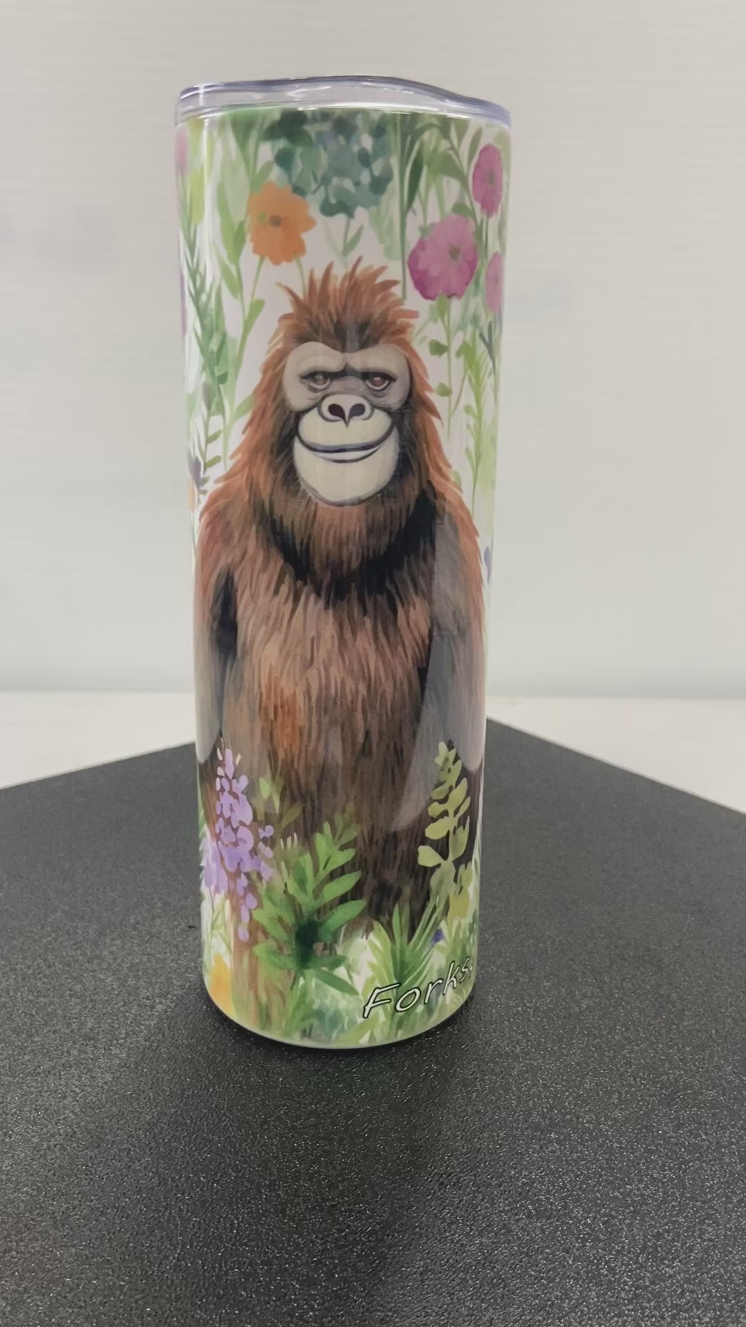 Girl Sasquatch Bigfoot in a meadow of flowers Tumbler Water Bottle